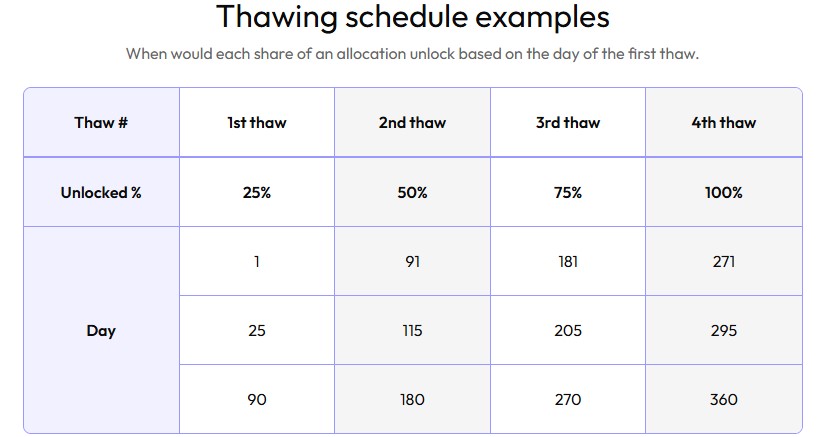 兑换将于12月10日开始。从上架日期的第二天开始,一直持续到2026年12月4日。每个钱包在最初的90天内都会随机获得一个解冻起始日期。之后,解冻将以另外三个90天的间隔进行。