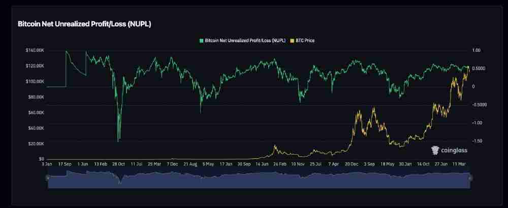 比特币净未实现盈亏(NUPL),来源:Coinglass