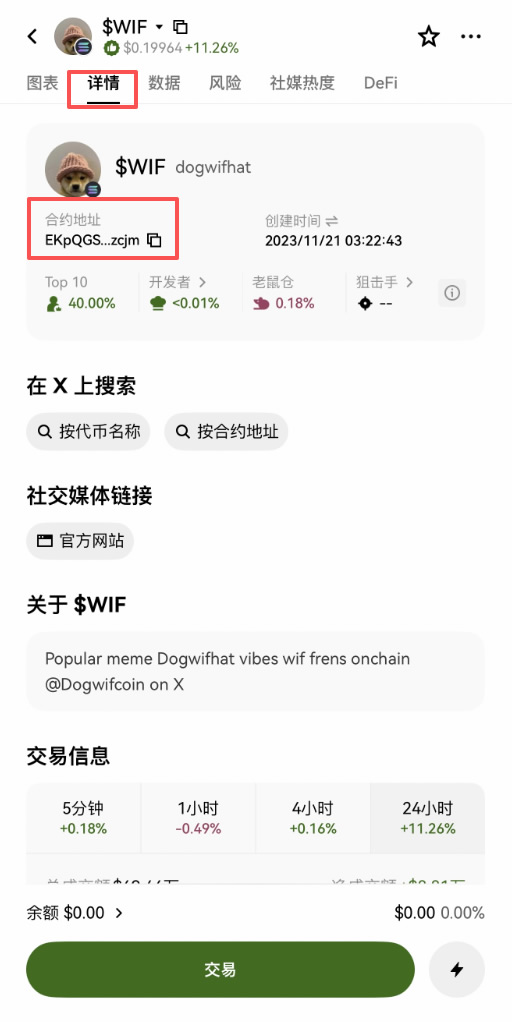 在交易页面搜索币种合约地址。