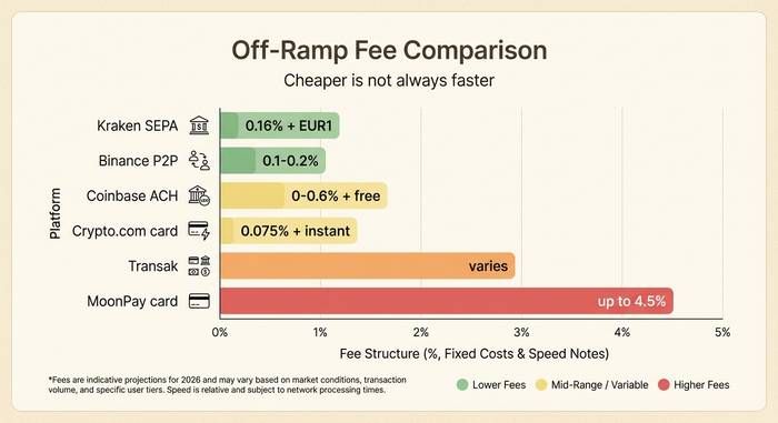 MoonPay 是支付领域的巨头。拥有 3000 万用户,估值 34 亿美元,预计 2025 年营收将达到 1.076 亿美元。他们于 2026 年 2 月与 PayPal 和 Mastercard 达成合作,并收购了拥有 6000 家商户的加密货币支付处理商 Helio。不过,他们的手续费结构相当高昂:信用卡 提现最高可达 4.5%。提现 1000 美元,就要损失 45 美元。为了方便,这笔费用值得吗?你自己判断吧。