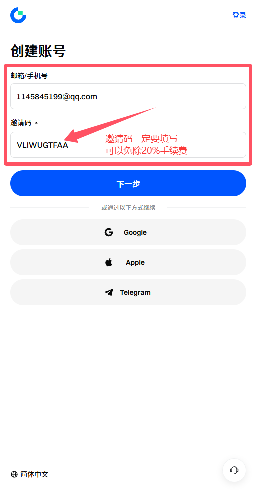 - 注册时一定记得填邀请码【AlNHBFgJ】,能省20%手续费