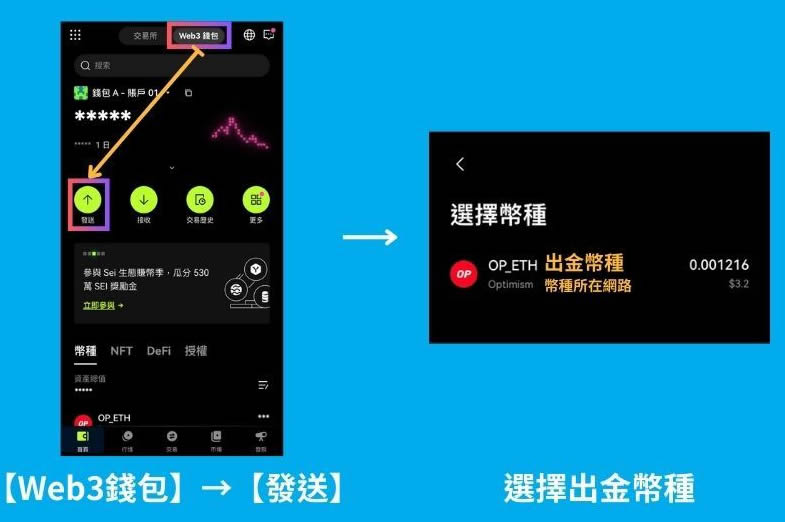 以下示范的是币安 Web3 钱包转到交易所的流程。