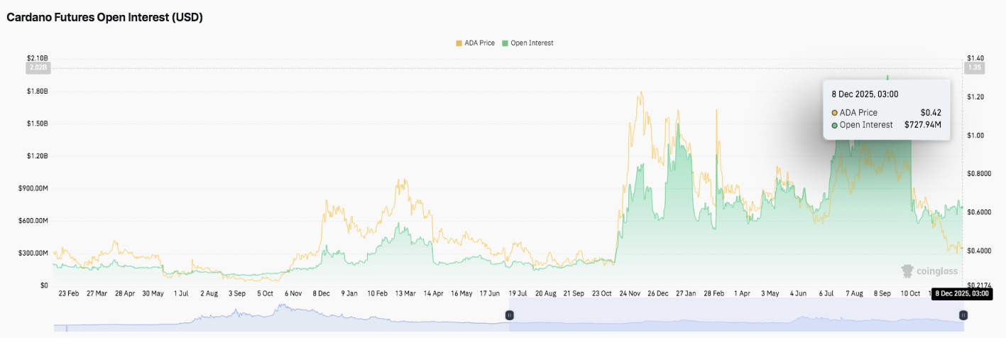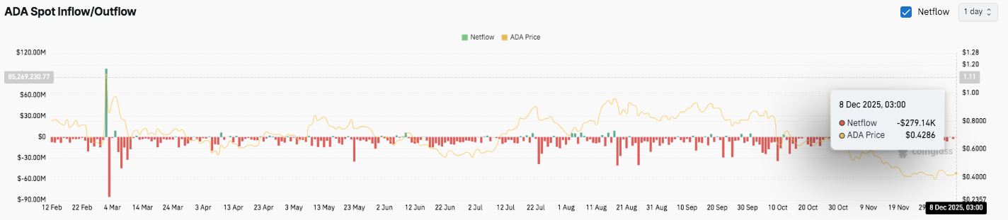 这一下跌表明,在近期市场波动之后,杠杆率有所下降。然而,该指标仍远高于年初水平。因此,即使动能放缓,交易者依然活跃。这种行为表明,市场对ADA的下一次突破尝试抱有浓厚的兴趣。