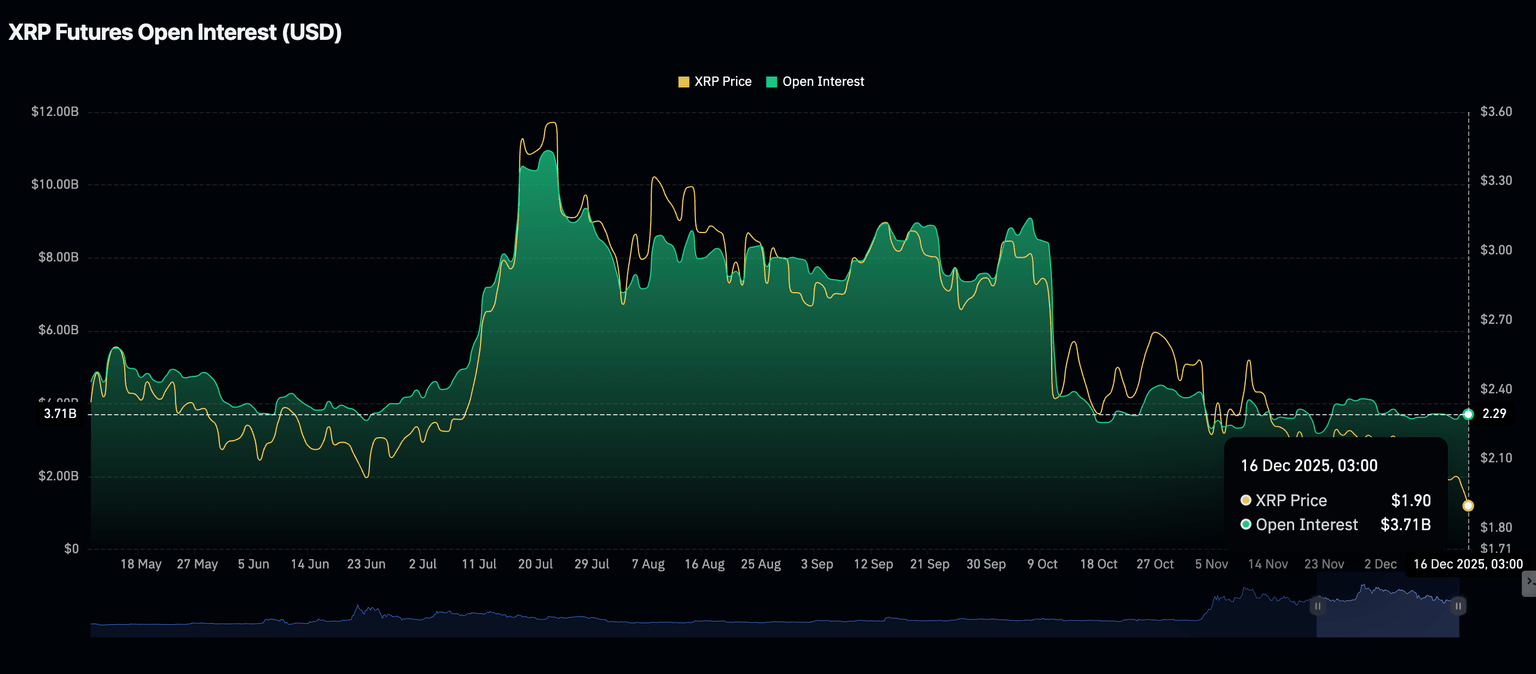 散户对 XRP 的兴趣依然十分低迷,周二其期货未平仓合约 (OI) 为 37.1 亿美元,低于前一日的 37.2 亿美元。CoinGlass 的数据显示,自 10 月 10 日暴跌以来,XRP 衍生品的需求一直没有恢复。那次暴跌导致 6.1 亿美元的多头头寸和 9000 万美元的空头头寸被清算。