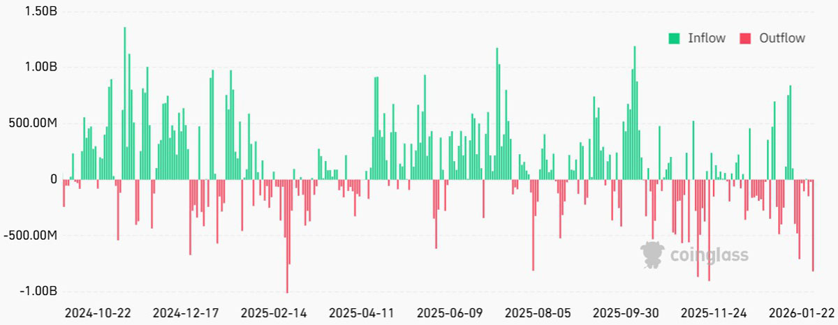 现货比特币交易所交易基金每日净资金流,单位:美元。来源:CoinGlass