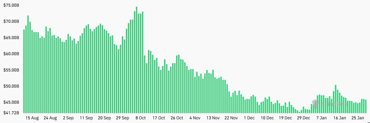 周四至周五期间,约8.6亿美元的杠杆多头比特币期货头寸被强制平仓,这表明许多交易员措手不及。不过,将此次暴跌完全归咎于杠杆可能并不准确;事实上,周四比特币期货未平仓合约总额降至460亿美元,较三个月前的580亿美元有所下降。