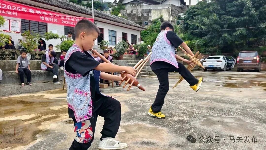此次培训既是落实"双减"政策的生动实践,也是铸牢中华民族共同体意识的具体举措。随着活动的不断推进,茭瓜塘小组的广场上将不停回荡着悠扬的笙歌,非遗文化的火种正在新一代苗族少年心中悄然点燃。