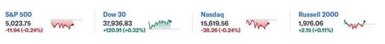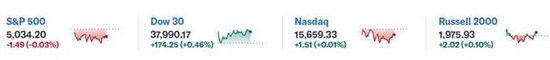 美股主要指数仅道指上涨,标普500指数大盘和科技股居多的纳指均低开低走,午盘时跌幅不断加深至日低。标普最深跌0.4%,纳指最深跌跌0.6%,均创4月22日以来的一周多新低,道指最高涨近147点或涨0.4%,脱离昨日所创的近两周低位。