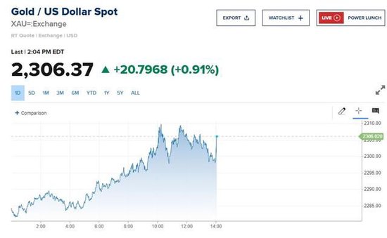 美债收益率下行和美元最初走低,令现货黄金升破2300美元整数位,美股盘初升至2310美元或最高涨1%,摆脱昨日下跌2%所创的4月5日以来四周新低。