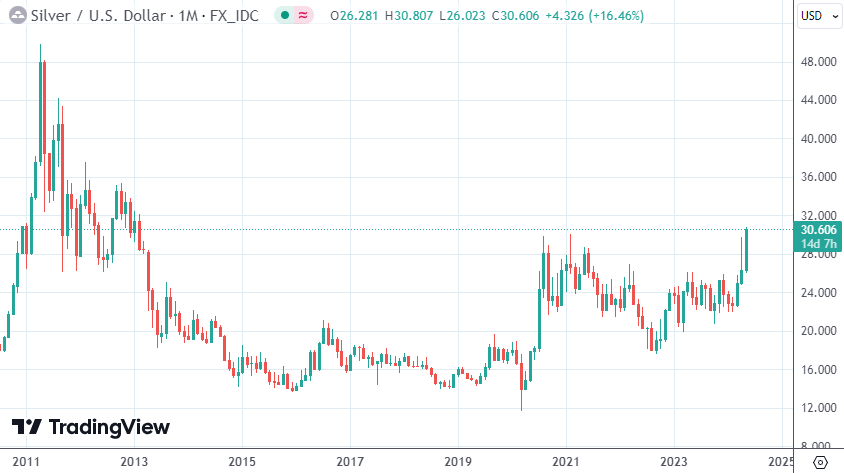 现货白银月线图