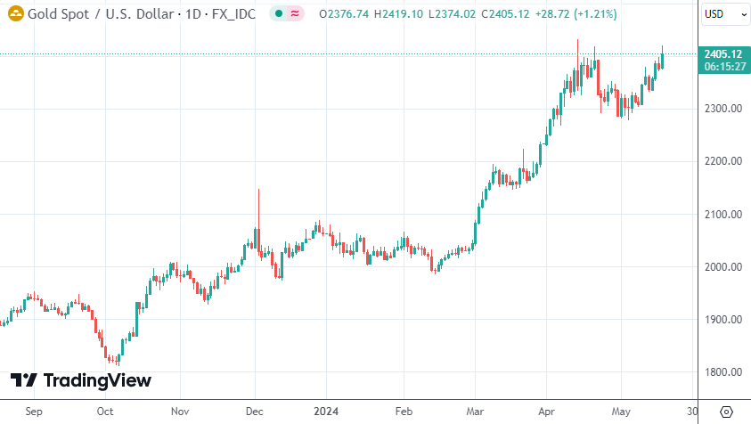 直上云霄!现货黄金一举冲破两千四 白银站稳30美元刷11年新高