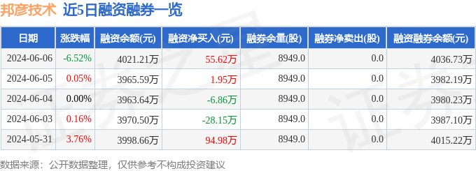 邦彦技术(688132)6月6日主力资金净卖出80.97万元