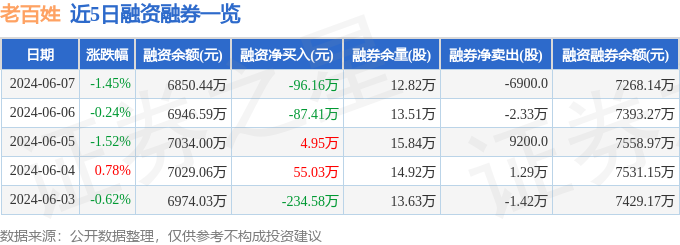 老百姓融资融券信息显示,融资方面,当日融资买入202.83万元,融资偿还298.99万元,融资净偿还96.16万元。融券方面,融券卖出6100.0股,融券偿还1.3万股,融券余量12.82万股,融券余额417.71万元。融资融券余额7268.14万元。近5日融资融券数据一览见下表: