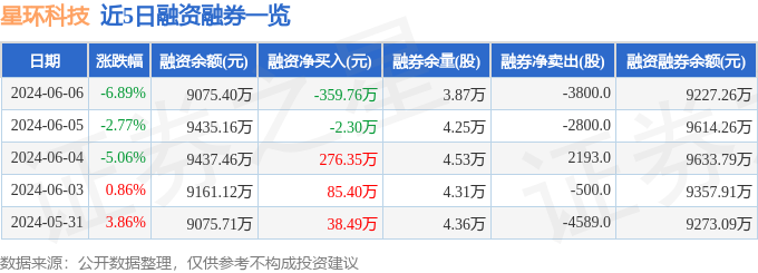 星环科技融资融券信息显示,融资方面,当日融资买入461.23万元,融资偿还820.99万元,融资净偿还359.76万元。融券方面,融券卖出2900.0股,融券偿还6700.0股,融券余量3.87万股,融券余额151.86万元。融资融券余额9227.26万元。近5日融资融券数据一览见下表: